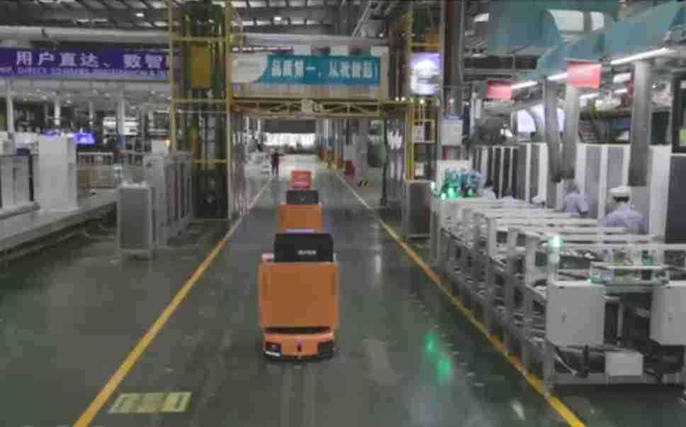 为车载冰箱物流配送打造的智能解决方案,,,包含产中物流通过潜伏举升AMR搬运至线边,,产后成品物流智能仓储,,流程包含产中物流智能齐套入库,,线边安灯叫料AMR智能配送至线边,,,成品入库、、出库,,,通过无人堆高车机器人,,智能仓储管理替代人工作业管理,,,实现更高存储、、、、更高效率、、更具柔性化的解决方案。。